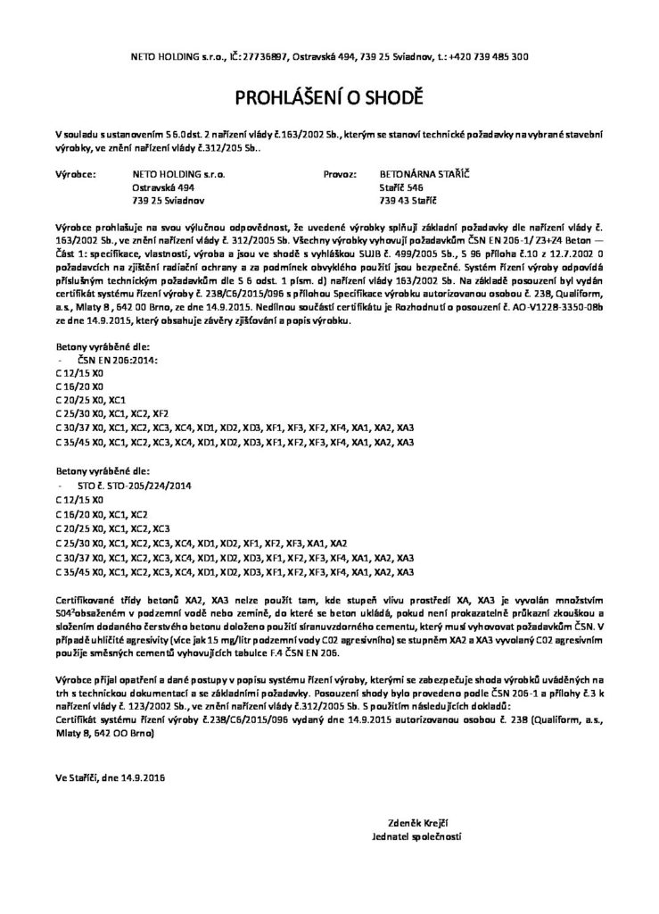 Certifikace Staříč